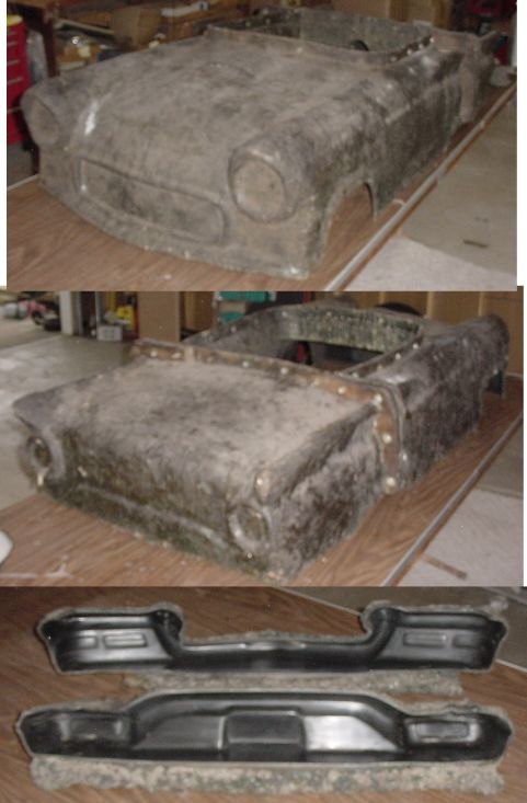 1957 Thunderbird JuniorsJust like the full size thunderbirds in 1957 the size did not increase but there were noticeable differences in the styling. The Tail-fin no longer went straight up the went out to the side. The styling of the 57 T-bird has been an icon since Suzanne Summers drove one in the movie American graffiti. This was the last year of the baby birds but this body was bigger than the previous two years as the full size cars were also a little longer. The truck area was extended to get the spare tire back in the trunk on the full size cars. The body demensions were 76 1/2" long, 20" tall, 37" wide, 34 1/2" wheelbase and weight without battery was 161 pounds (200 lbs for gas powered). Colors available in 1957 were Flame red, Starmist blue, Willow green, Peacock blue, Golden Yellow, Black and White I own the original factory mold for the 1957 Thunderbird JR. |