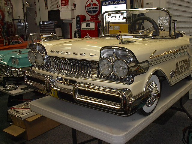 I have decided to dedicate this sub-page of the Mercury Junior (big M) page to this outstanding creation! I have a particular interest in this car since I found it in the before condition. I ended up selling it to another collector Steve Price who did the restoration/modification to look like his full size 1957 Mercury Turnpike cruiser pace car. I have started a Resourses page that I will list known available original parts and reproduction parts for Powercar products. I have also started to compile a list of surviving cars. but the list is only as good as the information that I am provided. or as good as i am able to update it. if you have information to share or parts to sell let me know. |